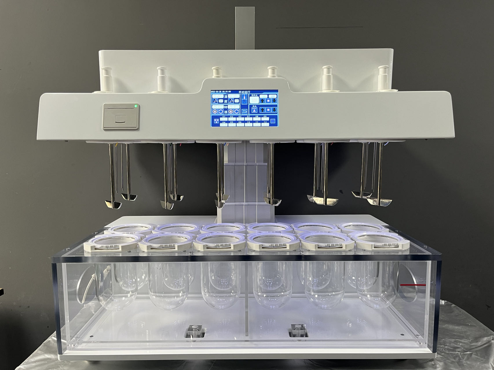 *智能取樣架可根據(jù)溶媒體積自動(dòng)升降,并且具有杯內(nèi)溫度實(shí)時(shí)監(jiān)測(cè)等功能。